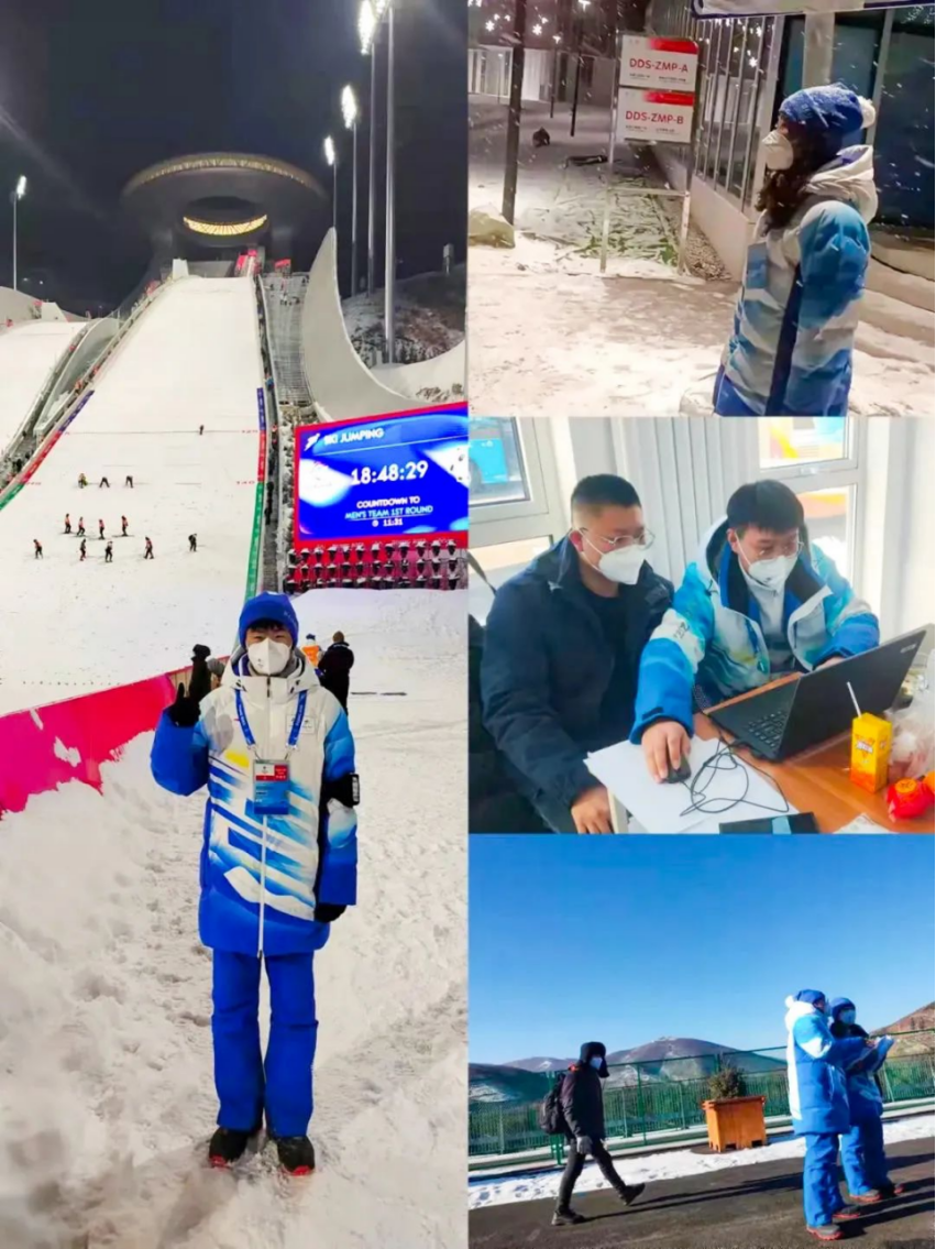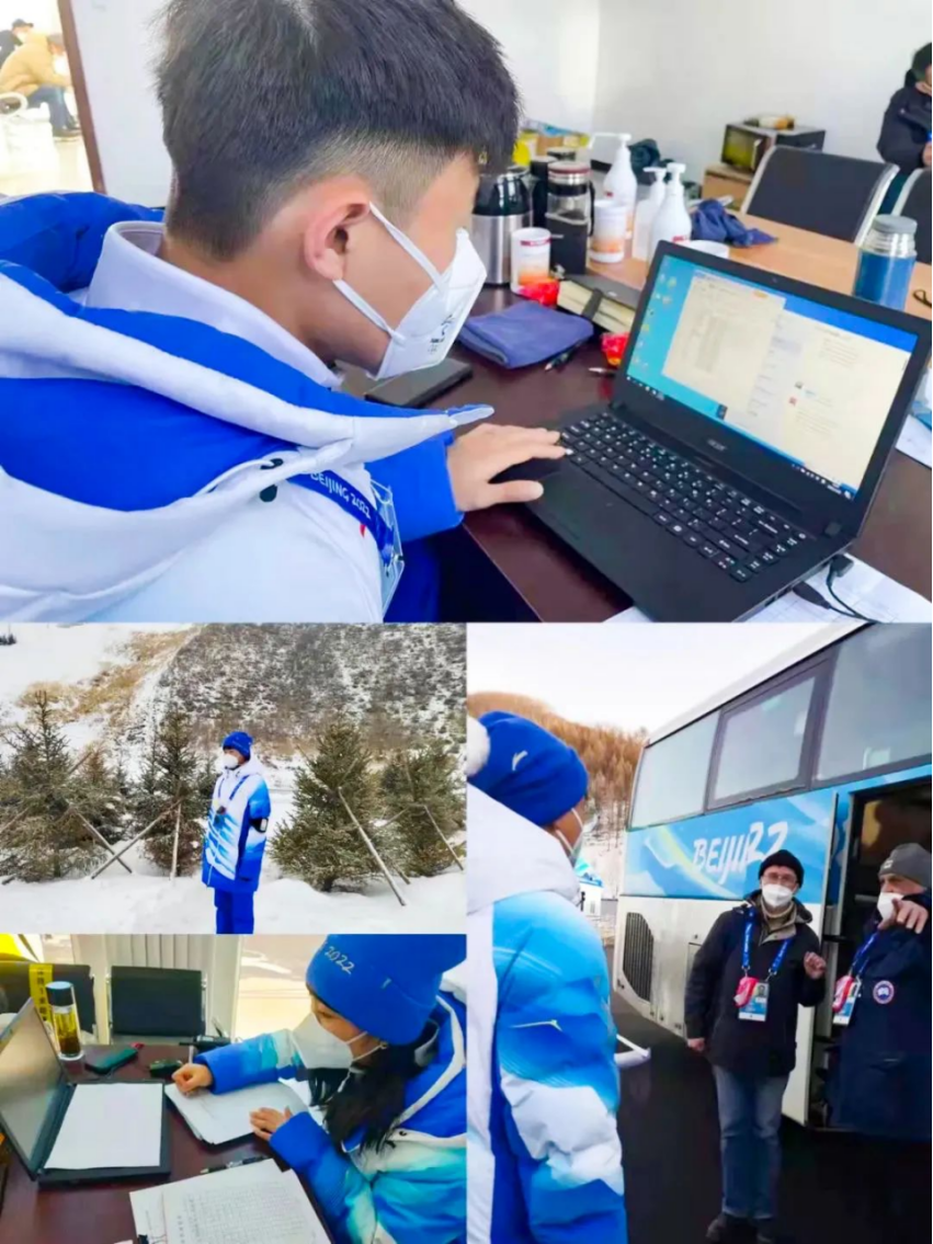 國家越野滑雪中心是本次冬奧會包攬了首金與末金唯一場館。我校6名志愿者分別服務于媒體運行領域的攝影,轉播服務領域的轉播服務綜合區。在極寒天氣下,他們每人平均在室外工作2.5小時甚至更多,人手不夠的情況下更是需要他們長時間堅守在崗位上。他們每天面對著大多數的外國攝影記者和OBS轉播商的工作人員都需要用英文交流,“Hello”“Can i see your card?”“Do you have armband?“Please fill in the information.”“Have a good time.”都是他們每天重復一遍又一遍說的話語,面對不同的點位,不同的記者,不同的問題,他們逐漸的可以獨當一面。睫毛上的冰珠,口罩帽子上的冰霜,風雪中的英姿,是他們最美好的經歷,最懷念的日子。他們是張職院的驕傲,是一個個小小的燈光,匯聚成一束強光照亮北京2022年冬奧會。