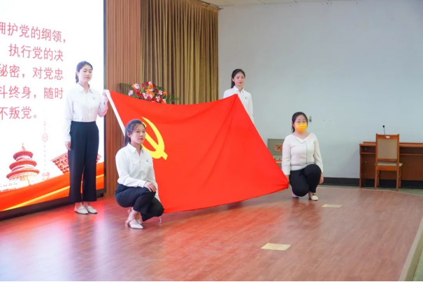 活動中全體人員面對鮮紅的黨旗,重溫入黨誓詞。大家緊握右拳,鏗鏘有力地宣讀入黨誓詞,在誓言中進一步強化黨員意識,堅定共產主義理想信念。