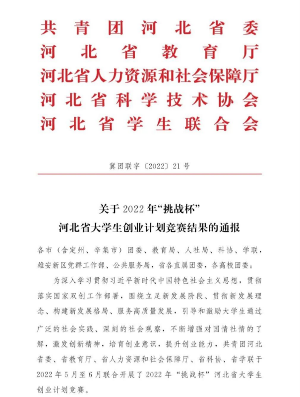 喜報丨我院在2022年“挑戰杯”河北省大學生創業計劃競賽中喜獲佳績