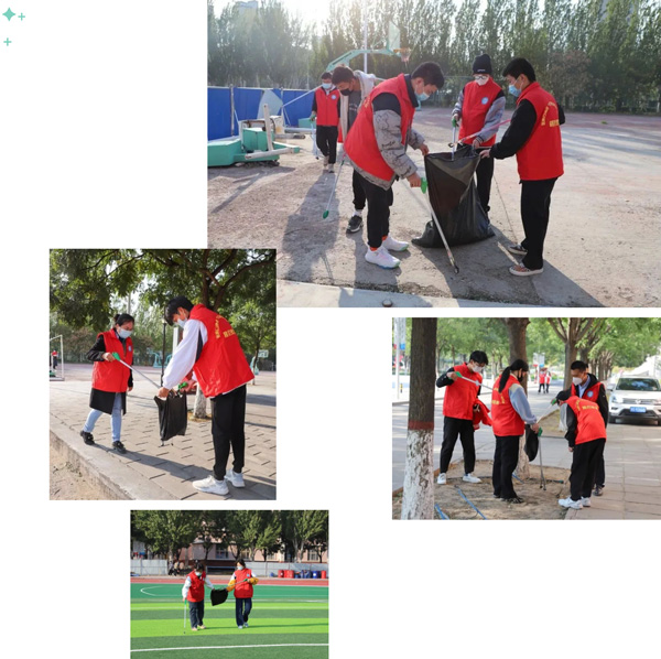 60余名師生志愿者著裝整齊,分工明確,手拿夾子等作業工具,從知行廣場北側開始,逐步向南直至校園體育場南緣,將校園內丟棄在道路上、綠化帶內、體育場上的白色垃圾和生活垃圾撿拾到垃圾袋中。志愿者們不怕臟,不怕累,不放過每一處細節,將隨地丟棄的煙盒煙蒂、飲料包裝、碎石磚塊、紙屑枯枝等雜物一一清理干凈,還給校園內一個整潔環境。