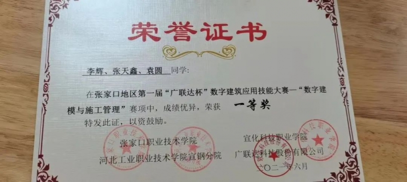 她積極參加各項職業(yè)技能大賽,并獲得2021年河北省“1+X”數(shù)字建模及施工應(yīng)用大賽三等獎,張家口“廣聯(lián)達(dá)杯”數(shù)字建筑應(yīng)用技能大賽一等獎;2022年再次報名參加2022年河北省“1+X”數(shù)字建模及施工應(yīng)用大賽和河北省第一屆職業(yè)技能大賽C80建筑信息建模(世賽),目前正在積極努力備賽。