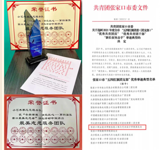2020年,代表河北省參加中華人民共和國第一屆職業技能大賽“商品展示技術項目”比賽,專業教師作為河北省該項目唯一裁判執裁本次大賽。2021年,參加河北省職業院校(高職組)技能大賽,奪得平面設計賽項一等獎和二等獎、數據庫應用技術賽項一等獎、“Python編程”賽項一等獎、Web前端開發賽項二等獎和三等獎、大數據賽項三等獎;在河北省高等職業院校“曼恒杯”應用VR技術創新設計大賽中榮獲二等獎;在河北省第一屆職業技能大賽張家口市選拔賽中榮獲一等獎一項、二等獎兩項和三等獎一項;參與我校大學生文化創意創新創業大賽二等獎。2022年,榮獲“挑戰杯”河北省大學生創業計劃競賽一等獎;第九屆“學創杯”全國高校大學生創業綜合模擬大賽河北賽區三等獎;第三屆張家口市創新創業大賽二等獎。