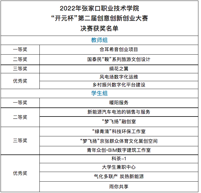 張家口職業技術學院“開元杯”第二屆創意創新創業大賽圓滿收官