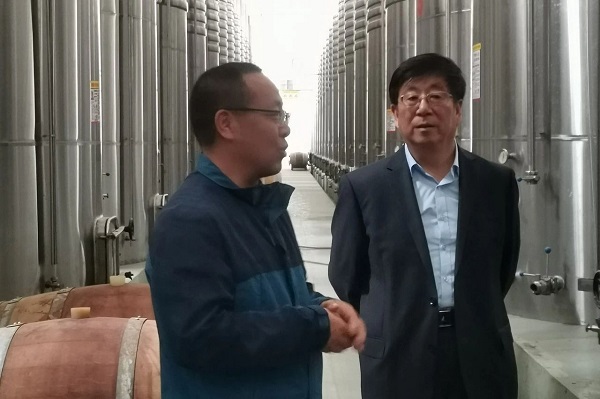 在懷來縣瑞云觀鄉(xiāng)黨委書記申玉山及企業(yè)負(fù)責(zé)人的陪同下,馮印濤一行分別參觀了河北懷來瑞云葡萄酒股份有限公司、懷來紫晶莊園葡萄酒有限公司。了解兩家企業(yè)的基本情況、葡萄酒的生產(chǎn)工藝及銷售模式。校企雙方就行業(yè)發(fā)展趨勢(shì)、學(xué)生實(shí)習(xí)就業(yè)、合作模式等進(jìn)行了交流探討。