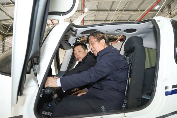 在集團董事長周革、總經理白力峰陪同下,馮印濤一行參觀了公司榮譽展廳、航空科技展廳、航線指揮平臺,聽取了工作人員就航空專業知識、行業發展趨勢等內容介紹,現場體驗了模擬飛行器的操作感受。隨后,馮印濤又來到救援直升機起降場、航空器維修中心,近距離參觀了西銳SR20固定翼飛機和恩斯特龍480消防直升機等機型,對飛機機型特點及遂行任務進行了詳細了解。