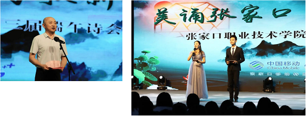 市委宣傳部副部長宋向軍,市文聯(lián)黨組書記、主席王芳,市新聞工作者協(xié)會主席、河北省燕趙文化研究會副會長劉喜,張家口開放大學黨委書記楊汝明,中國移動張家口分公司黨委書記、總經(jīng)理張彥生,市文化廣電和旅游局副局長許劍,共青團張家口市委副書記溫旭春,市廣播電視臺副臺長董峻峰,領克汽車張家口工廠校企合作經(jīng)理韓志勇及來自市委組織部、河北北方學院、市作家協(xié)會、市民間文藝家協(xié)會等有關單位部門負責人應邀出席活動。學院領導馮印濤、王立軍、周文勝、張東兵、張智勇與各政處室、二級院系負責人,師生代表共同觀看演出,領略詩詞魅力,感受詩詞之美。