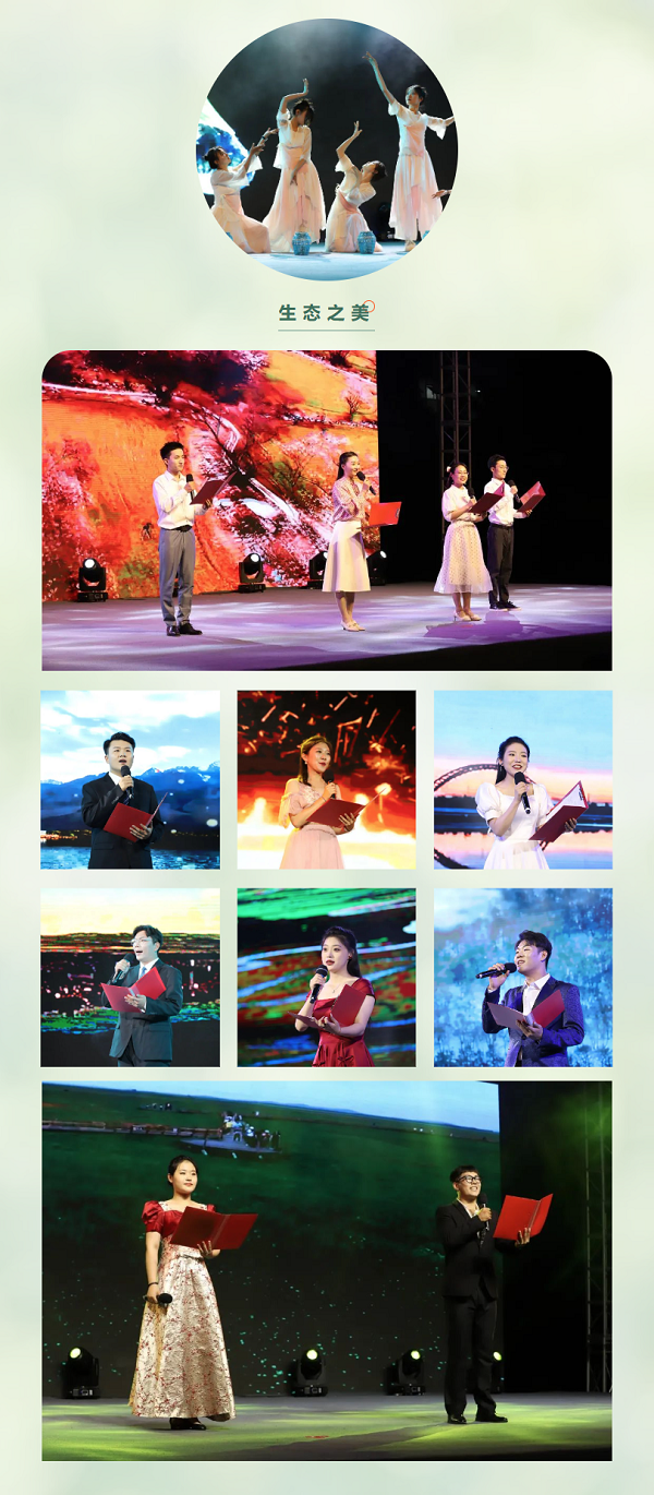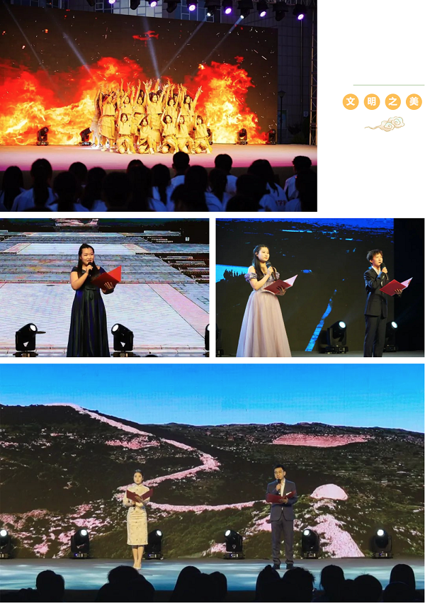 今年的詩會以“美誦張家口·高歌新時代”為主題,共分為“文明之美”“生態(tài)之美”“時代之美”“奮斗之美”四個篇章。在展現(xiàn)中華千古文明的集體舞蹈《火圖騰》中, “文明之美”篇章拉開序幕。《泥河灣,人類第一個腳步聲》《涿鹿,是歷史珍藏的一片彩釉》和《大境門》三首詩作,通過朗誦者的深情誦讀,傳唱著華夏文明的千年雄渾和張垣大地悠久的歷史脈絡;“生態(tài)之美”篇章則通過《春天里的中國(節(jié)選)》《壩上的七月》《蔚州詩章》、《清水河》《在康巴諾爾草原》《閃電河畔》《崇禮滑雪場》《張家口,好一片大好河山》等優(yōu)秀作品,贊頌張家口大好河山的壯美,將一幅秀美的生態(tài)畫卷在現(xiàn)場觀眾的心中徐徐展開;“時代之美”篇章中,由我院教師、企業(yè)代表和夢飛揚朗誦藝術團學生們演繹的《時間的入口(節(jié)選)》《在喜慶的日子里》兩首作品,表達出了廣大黨員干部群眾在黨的二十大精神指引下以奮斗姿態(tài)重整行裝再出發(fā)的信念和堅定不移跟黨走、為黨和人民不懈奮斗的初心使命。詩會在“奮斗之美”篇章《春天的模樣》《無奮斗不青春》兩首作品中接近尾聲,伴隨著一聲聲鏗鏘有力的青春誓言,詩會迎來最后的高潮,專業(yè)而流暢的表演讓在場觀眾沉浸其中,詩會在《乘風破浪再出發(fā)》的歌聲中落下帷幕,同時,也展示出了張職院全體師生乘風破浪再揚帆、改革開放再出發(fā)的光明前景。