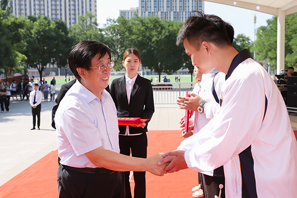 紀委書記周文勝、副院長劉子林、張智勇出席典禮。相關行政處室負責人、二級院系黨總支書記及分管負責人、2023屆畢業班輔導員和畢業生代表、各院系在校生代表共計近300余人參加典禮。