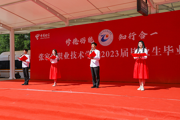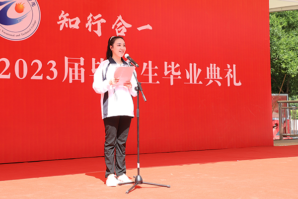 畢業生代表、機電工程學院2020級學生侯京奧在發言中感謝母校及恩師的辛勤培養,勵志以飽滿的激情和張職人特有的姿態,奉獻社會,實現自我,為實現中華民族偉大復興的中國夢貢獻青春力量。