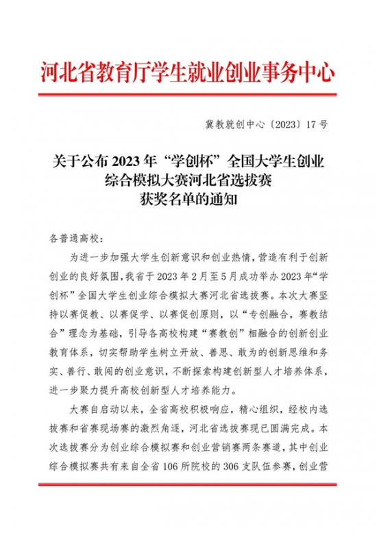喜報|我院在2023年第十屆“學創杯”全國大學生創業綜合模擬大賽河北賽區選拔賽中取得佳績