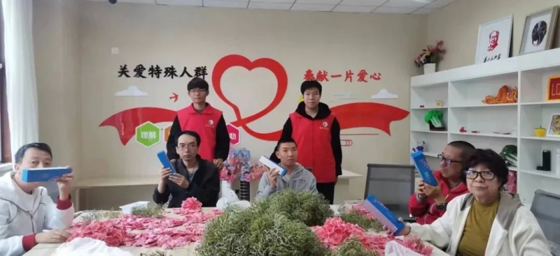 活動(dòng)中,同學(xué)們走進(jìn)殘障人士的生活,與他們進(jìn)行面對(duì)面、心對(duì)心的溝通與交流,幫助他們制作了手工花,用實(shí)際行動(dòng)傳遞愛(ài)老助殘之心。