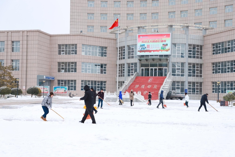為保障師生正常上課、出行,12月11日上午,學(xué)院師生及時(shí)組成掃雪隊(duì)伍,共同掃雪除冰、暢通道路、消除隱患。