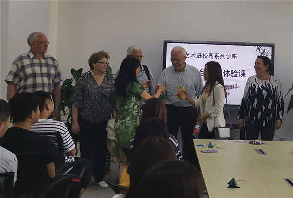 講座臨近尾聲,恰逢俄羅斯友人到訪我院,客人們走進課堂,體驗了香囊和面塑的制作過程,同學們把自己制作好的香囊作為禮物贈送給俄羅斯朋友,讓他們品味中國傳統文化,增進友誼。