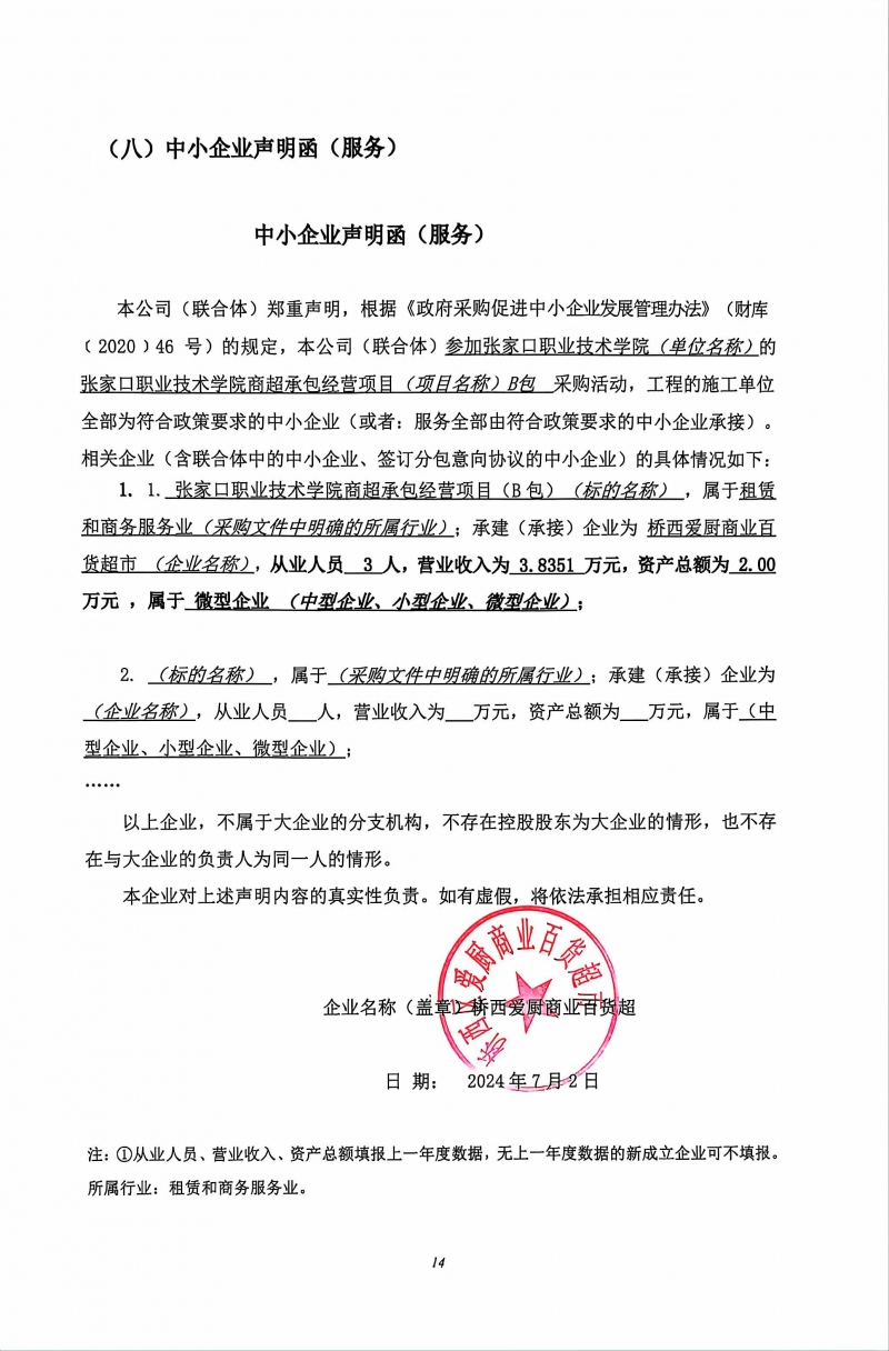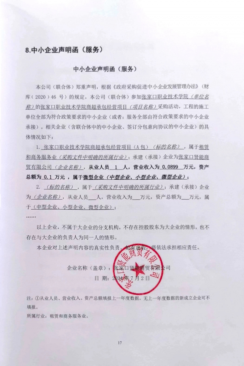 張家口職業技術學院商超承包經營項目(A包)