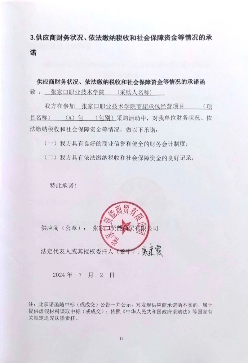 二、項目名稱:張家口職業技術學院商超承包經營項目
