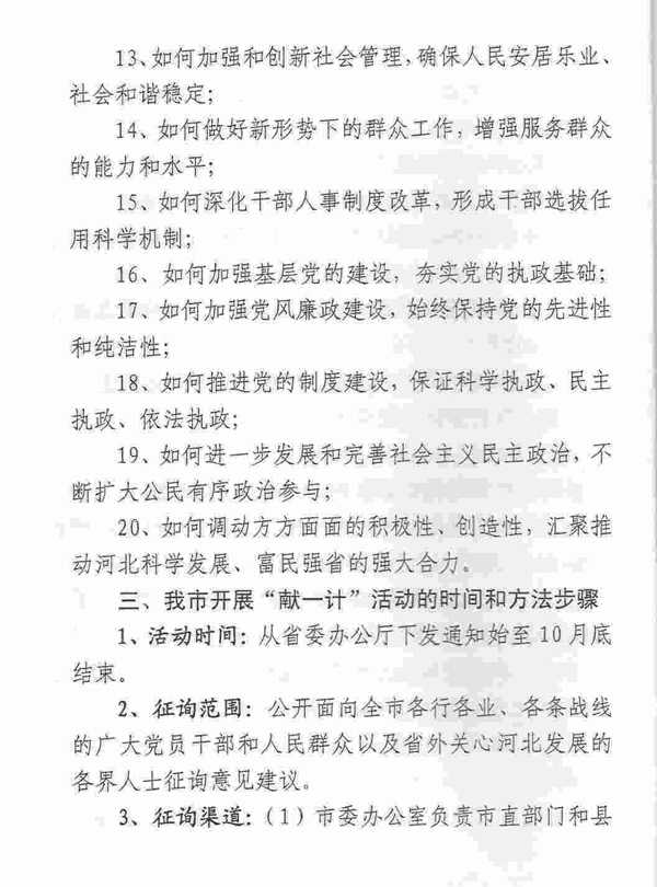 關于積極開展“迎接省第八次黨代會,我為河北發展獻一計”活動的通知