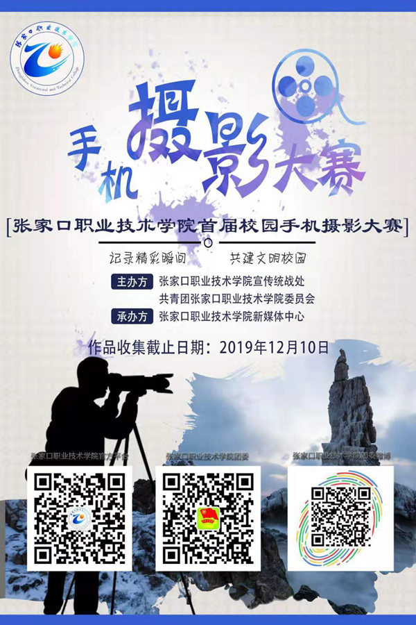 針對廣大師生反映2019張家口職業技術學院首屆校園手機攝影大賽投稿時間不足的意見反饋,大賽主辦方決定將投稿截止時間延長至12月10日。
