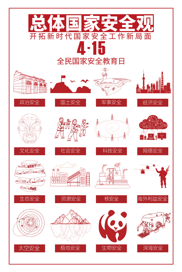 為了體現總體國家安全觀的要求,《中華人民共和國國家安全法》從政治安全、國土安全、軍事安全、經濟安全、文化安全、社會安全、科技安全、信息安全、生態安全、資源安全、核安全等領域對國家安全任務進行了明確。