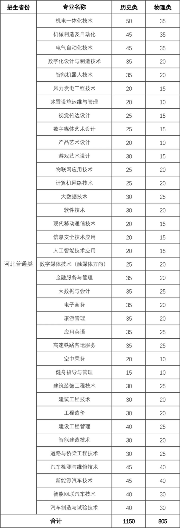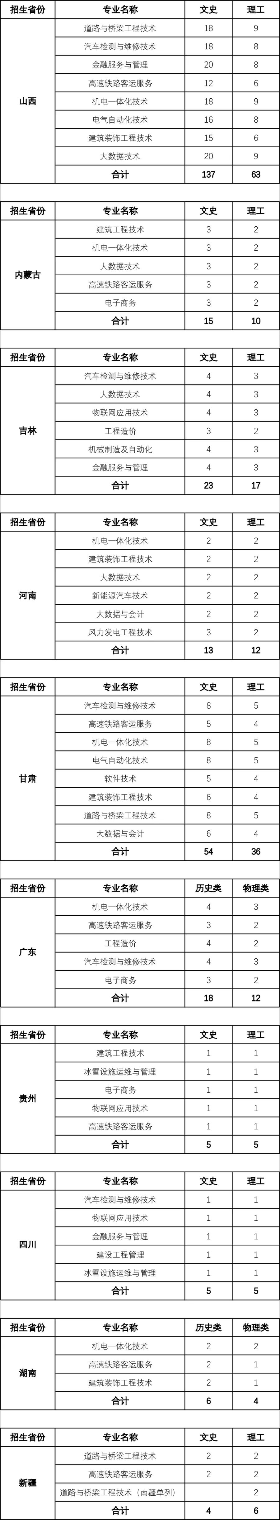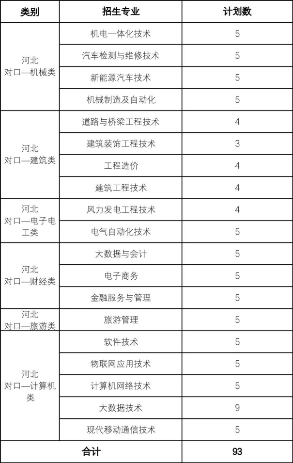 張家口職業技術學院2022年省外