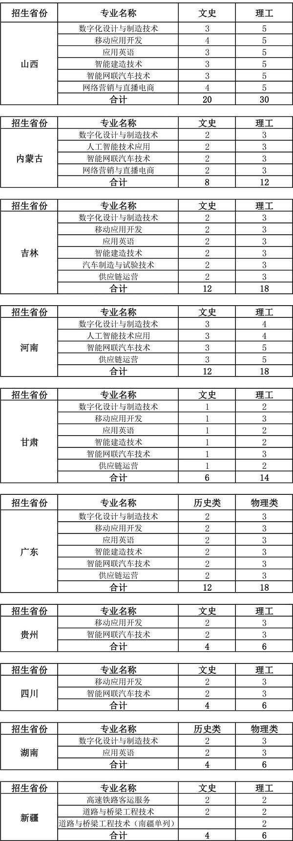 張家口職業(yè)技術(shù)學(xué)院2023年分省分專業(yè)招生計(jì)劃