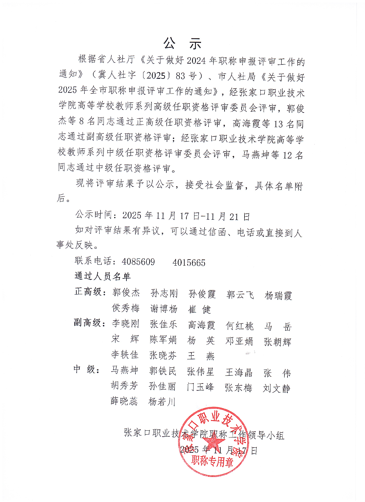 2025年職稱申報(bào)評(píng)審結(jié)果公示