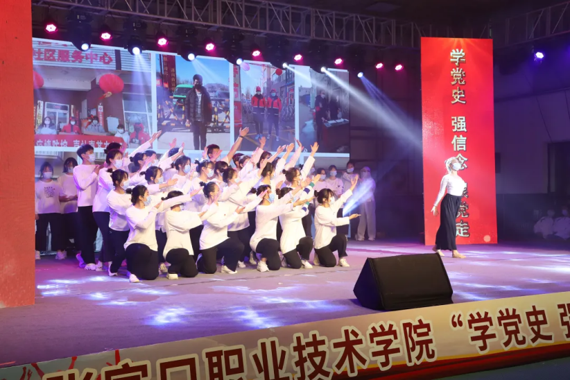 活動(dòng)過程中,精心編排的文藝演出將整場(chǎng)氣氛不斷推向高潮。大學(xué)生青春文藝團(tuán)的合唱《少年》,詮釋出新時(shí)代青年學(xué)生一心向黨、昂揚(yáng)奮進(jìn)的精神風(fēng)貌;話劇《覺醒年代》藝術(shù)地再現(xiàn)了一百年前崢嶸歲月中,中國(guó)先進(jìn)分子和熱血青年通過思想轉(zhuǎn)變不斷探尋救國(guó)之路;情景劇《同心抗疫》回顧了2020年戰(zhàn)“疫”過程中涌現(xiàn)出來的醫(yī)生、警察、志愿者等不同優(yōu)秀群體的先進(jìn)事跡,向每一位在抗擊疫情中舍小家為大家的人民公仆表達(dá)敬意;合唱《當(dāng)代力量》唱出了廣大青年學(xué)生對(duì)祖國(guó)的熱愛,對(duì)中國(guó)戰(zhàn)疫英雄的敬意;歌曲《少年中國(guó)說》呈現(xiàn)了青春校園中青年學(xué)生積極向上、朝氣蓬勃的精神面貌和為學(xué)校、社會(huì)、國(guó)家發(fā)展貢獻(xiàn)力量的信心和決心;獨(dú)舞《芳華》優(yōu)美大氣,抒發(fā)著對(duì)祖國(guó)深沉的愛;舞蹈《夢(mèng)圓冬奧》表達(dá)了張職學(xué)子對(duì)2022冬奧會(huì)的美好祝福。