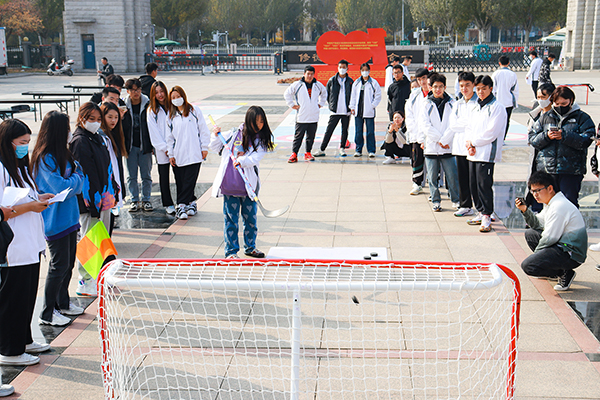 10月26日至11月2日,我院賽會儲備志愿者和熱衷于冬奧項目的學(xué)生們齊聚知行廣場,進(jìn)行冬奧競賽項目體驗活動暨“奔向冬奧 志愿者在準(zhǔn)備”冬奧競賽項目大PK。在冬奧組委的大力支持下,學(xué)院為學(xué)生們配發(fā)了旱地冰壺、冰蹴球及冰球射門活動道具,將三個冬奧競賽項目在同一時間向同學(xué)們進(jìn)行展示與體驗,使大家感受到冰雪項目的獨(dú)特魅力。來自各院系16支團(tuán)隊的128名志愿者們按照賽前抽簽分組進(jìn)行了團(tuán)體競賽,按照16進(jìn)8、8進(jìn)4、4進(jìn)2的賽制最終決出各項前三名。比賽過程中,同學(xué)們?nèi)σ愿埃瑘F(tuán)結(jié)協(xié)作,賽出成績,賽出友誼,展現(xiàn)出我院學(xué)子喜迎冬奧的青春面貌。