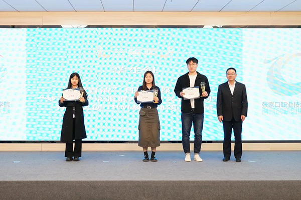 開元控股集團董事長侯冠夫、張家口工業(yè)設計創(chuàng)新中心部長姚亞莉和學院紀委書記周文勝分別為學生組一、二、三等獎獲獎團隊頒獎。