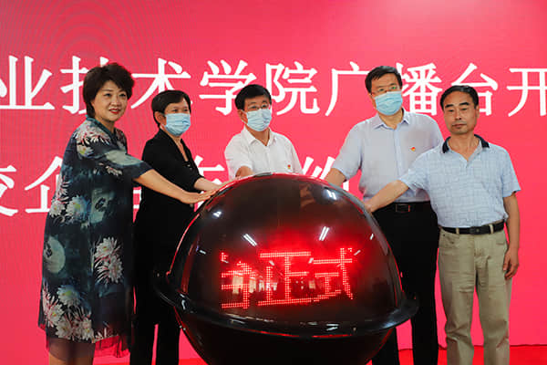 儀式上,學(xué)院黨委書記馮印濤、張家口新聞傳媒集團董事長劉慶國、市教育局副局長賀志英、河北北方學(xué)院法政學(xué)院院長吳鳳翔、張家口新聞傳媒集團播音部主任苑紅蓮共同為張家口職業(yè)技術(shù)學(xué)院廣播臺啟動開播。