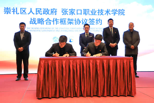 馮印濤強調,政校企合作是職業院校改革發展的必由之路、創新之路和希望之路。我院將以此為新的起點,進一步深化改革,不斷優化人才培養體系建設,不斷提高社會適應性人才質量,共享發展機遇、共擔時代使命,深度服務于崇禮區和全市經濟社會發展。我院將緊緊把握習近平總書記賦予張家口“首都兩區”、“河北一翼”的戰略定位,搶抓京津冀協同發展、京張攜手舉辦冬奧會、建設國家可再生能源示范區的重大機遇,深入對接“五城建設”、“七大主導產業”,在新發展格局中,共創政校企合作新典范、新模式、新業態。