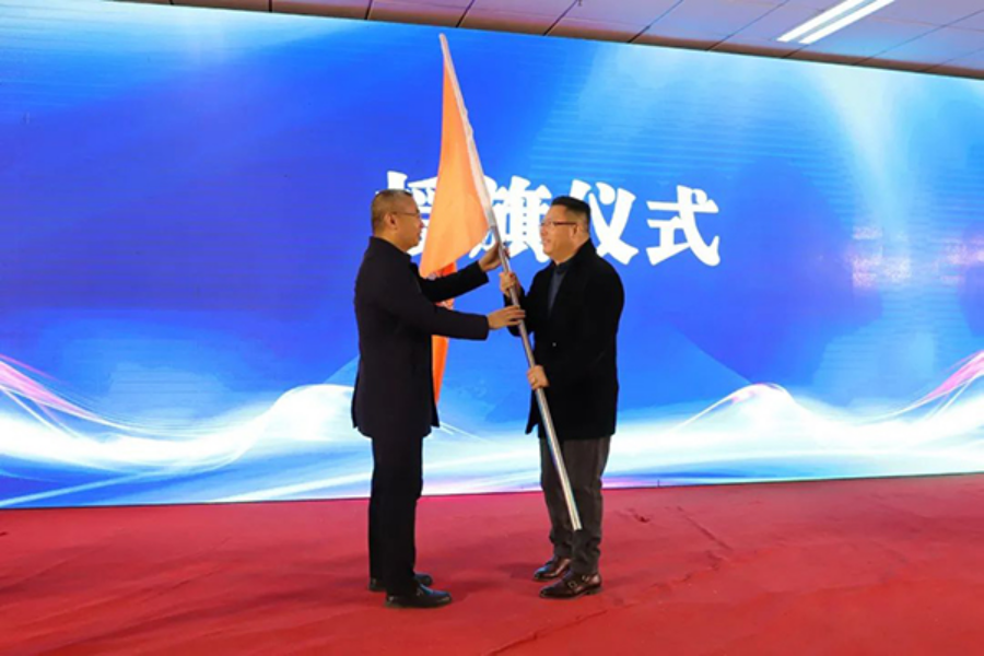 王立軍將“三創”大賽旗幟交到開元控股集團董事長侯冠夫手中。開元控股集團將冠名并贊助我院第二屆創意創新創業大賽。