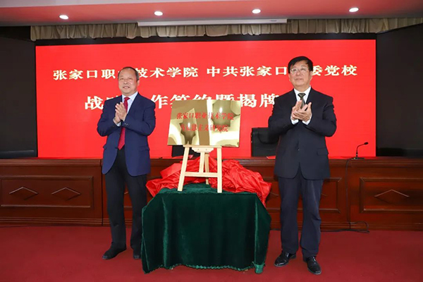 儀式上,黨委副書(shū)記、院長(zhǎng)王立軍與中共張家口市委黨校常務(wù)副校長(zhǎng)王永共同簽署張家口職業(yè)技術(shù)學(xué)院、中共張家口市委黨校戰(zhàn)略合作協(xié)議。