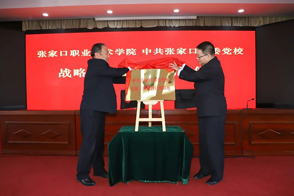 紀(jì)委書(shū)記周文勝與中共張家口市委黨校副校長(zhǎng)王宏為張家口職業(yè)技術(shù)學(xué)院思政教育協(xié)同育人基地、中共張家口市委黨校黨員干部教育培訓(xùn)教學(xué)點(diǎn)揭牌。