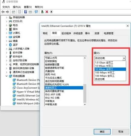 替換網線,確保電腦和網絡設備的接口有無異常,設備管理器中更改下網卡的工作模式,即雙工模式,改成10M 或者 100M看能否解決。