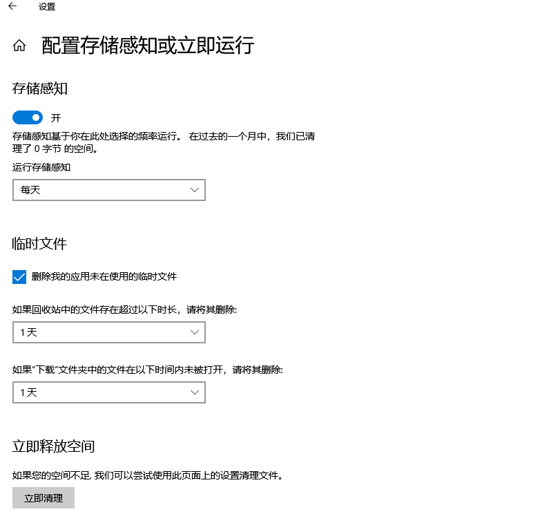勾選【刪除臨時文件】,把下面兩個選項全部設置為【1天】,這樣電腦就會定時自動清理垃圾。
