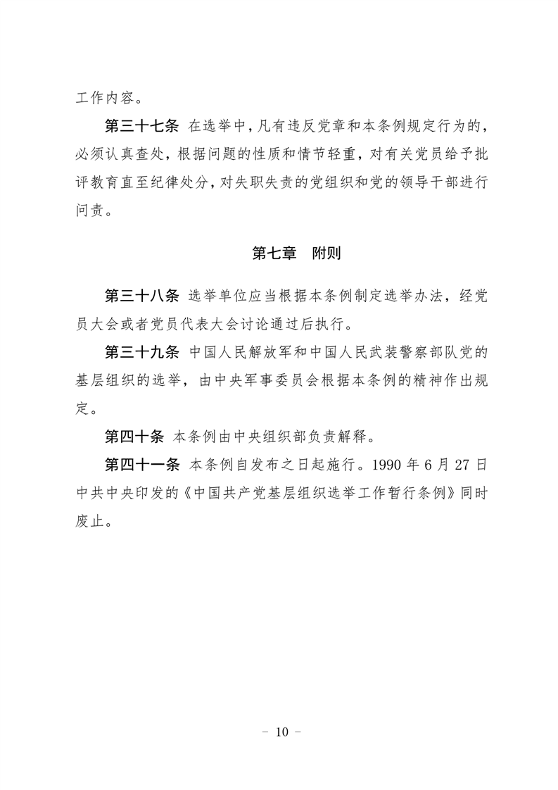 中共中央印發(fā)《中國共產(chǎn)黨基層組織選舉工作條例》